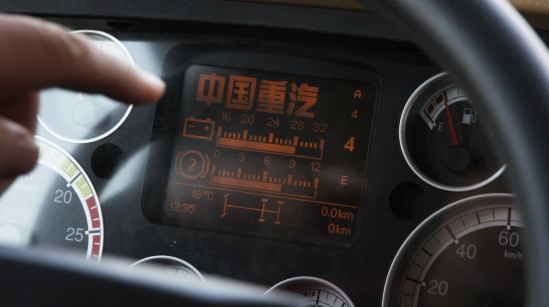 這也是小編第一次實際駕駛HOWO A7,初次看到操作手柄,按鈕功能鍵不超過五個,簡單清晰的布置防止出現(xiàn)誤操作。單從手柄造型上講,筆者總覺得非??ㄍ?,很像咸蛋超人“奧特曼”,也許我童心未泯吧,呵呵!