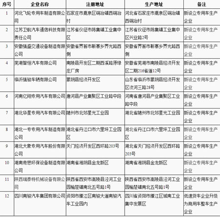 一、擬發(fā)布新增車輛生產(chǎn)企業(yè)清單